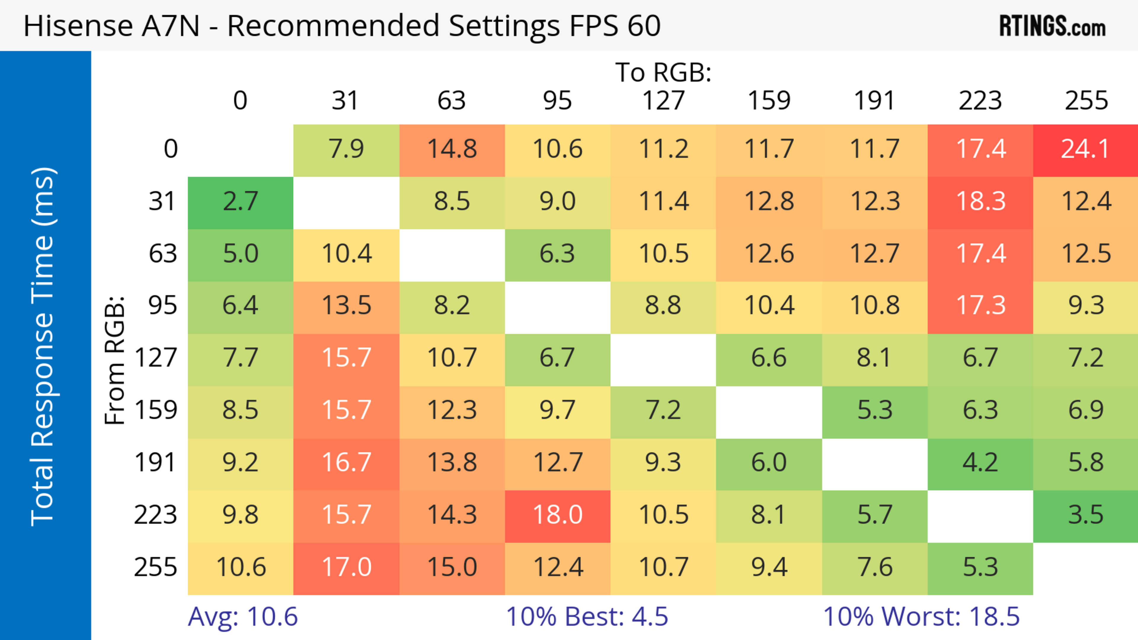 The Hisense U6N is better than the Hisense A7N, mostly due to its fantastic local dimming feature. This lets the U6N display much deeper blacks than the A7N can, leading to a much better HDR viewing experience overall. The U6N is also brighter in HDR and SDR, so ultimately, all content pops more on that model. Still, the A7N is much more accurate in SDR prior to being calibrated, but it doesn't quite make up for the U6N's edge in image quality.