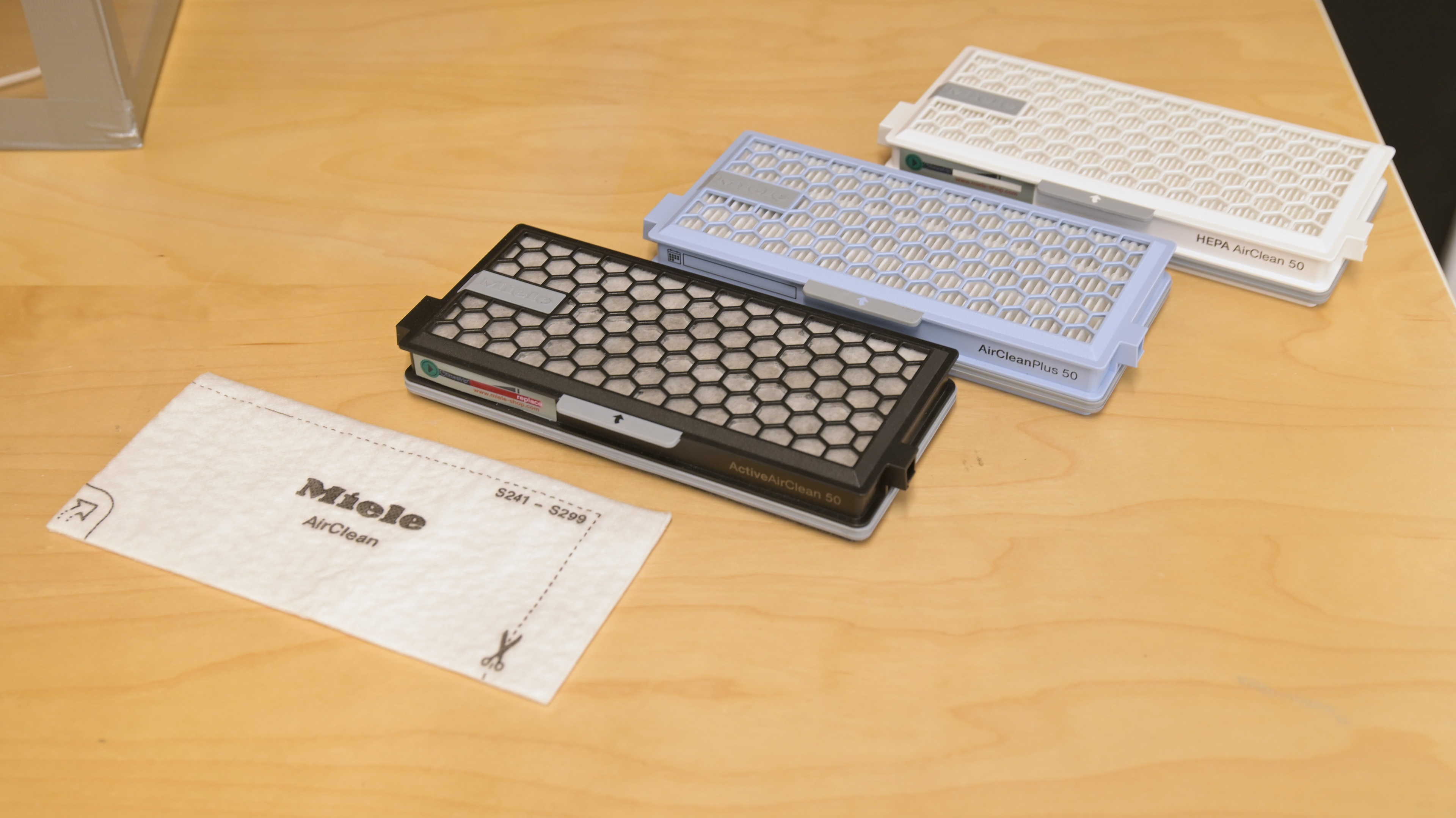 To demonstrate this, we used the Miele C3, which is compatible with multiple filters of varying grades. The Miele AirClean uses a thin sheet of filtration material. The Active AirClean contains activated carbon, designed to eliminate odors. The AirClean Plus is available with certain newer Guard series vacuums. The HEPA AirClean is the highest-grade filtration offered by Miele.