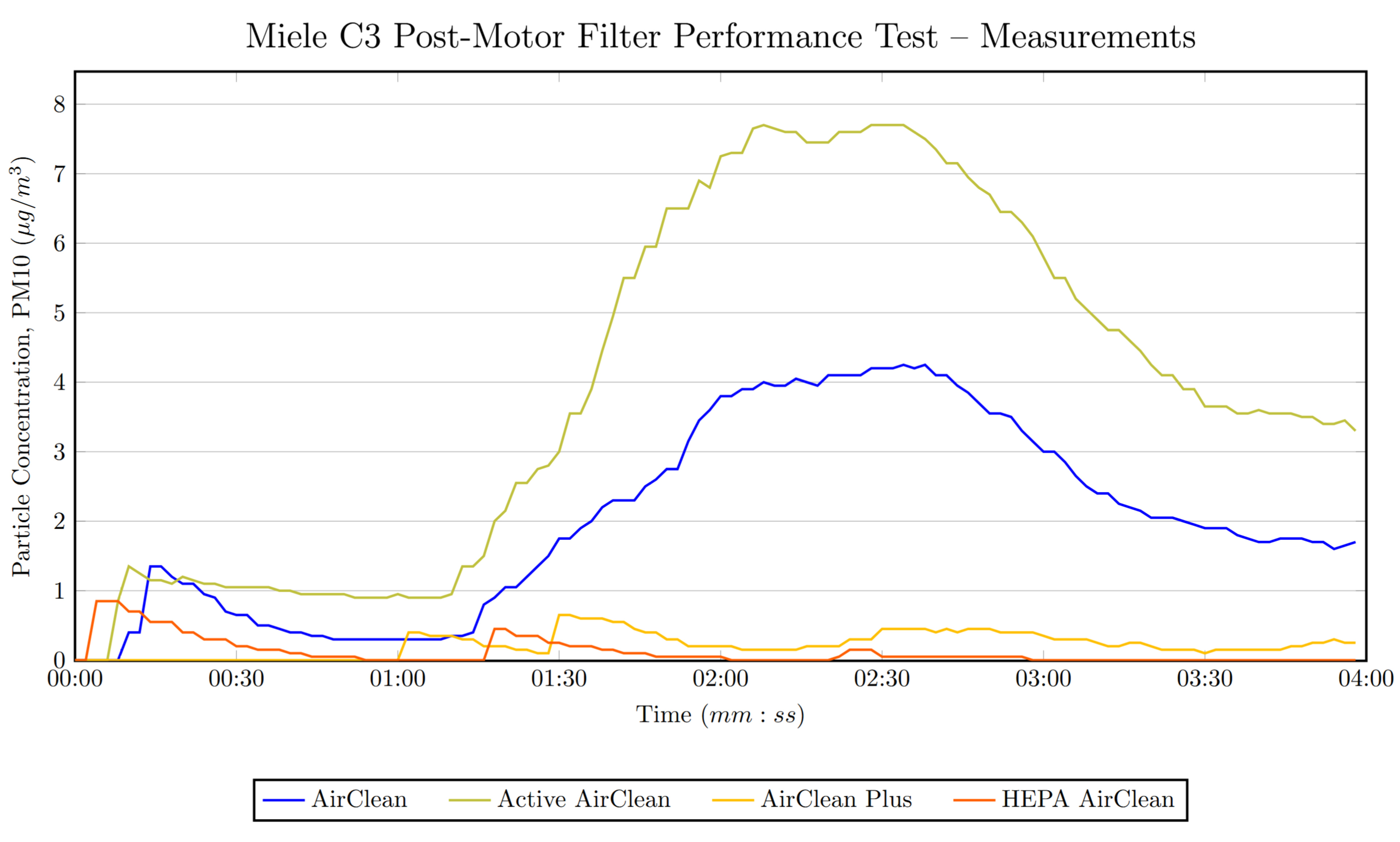 This illustrates how a minor adjustment to the filter can significantly impact the emissions from the vacuum cleaner. We didn't test how long it would take to clog or significantly reduce the airflow from the vacuum, but it would likely be faster than with the regular filter.
