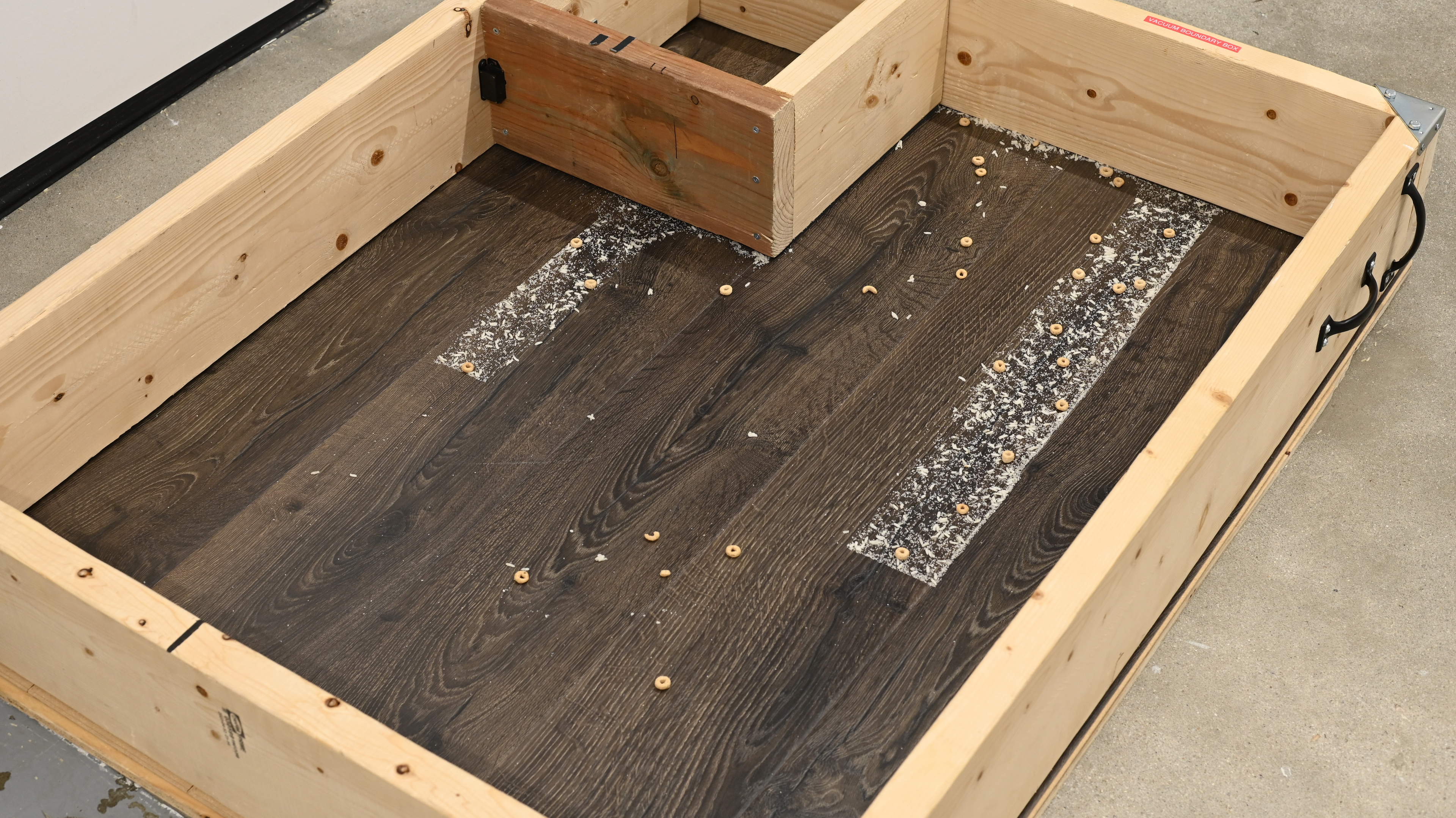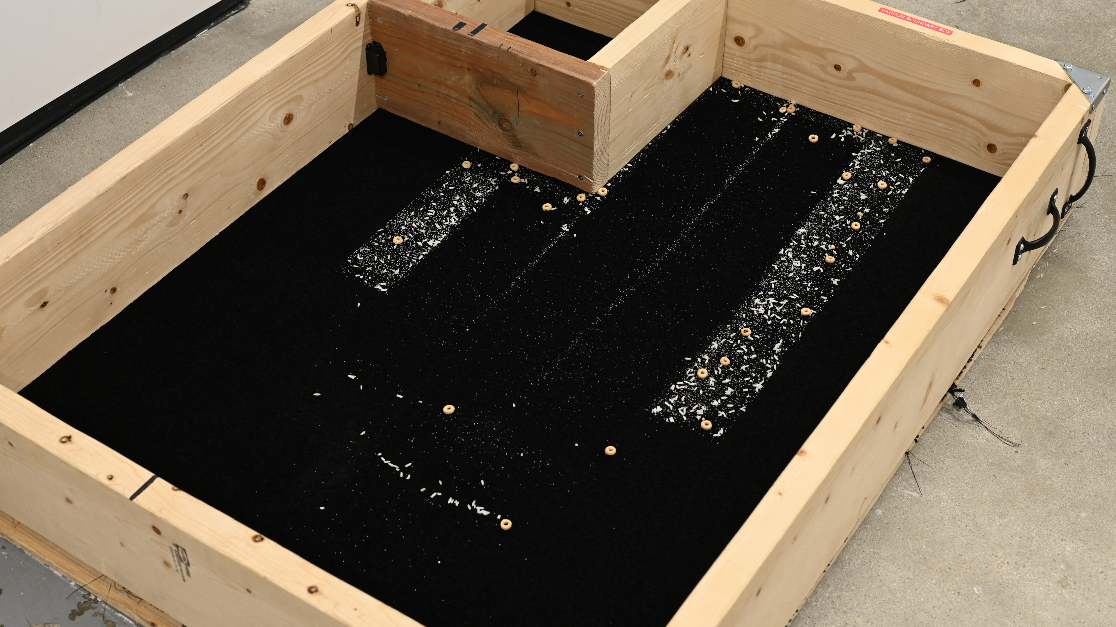 The mopping system is nearly identical to that of the Dyson V15s Detect Submarine: it uses an absorbent roller that soaks up water, and a pump that pulls water from the roller and discharges it into a separate tank. The tank isn't fully sealed, so the water can spill out if the tank is nearly full and you move the floorhead too quickly, or if you pick the floorhead up at an angle. Soaking up water this way is a slow process, and it's not much more effective than a manual mop. It may appear fine at first because the water is spread very thin, but another pass with a higher concentration of dye shows there's still a lot of water present, and a final pass shows little improvement.