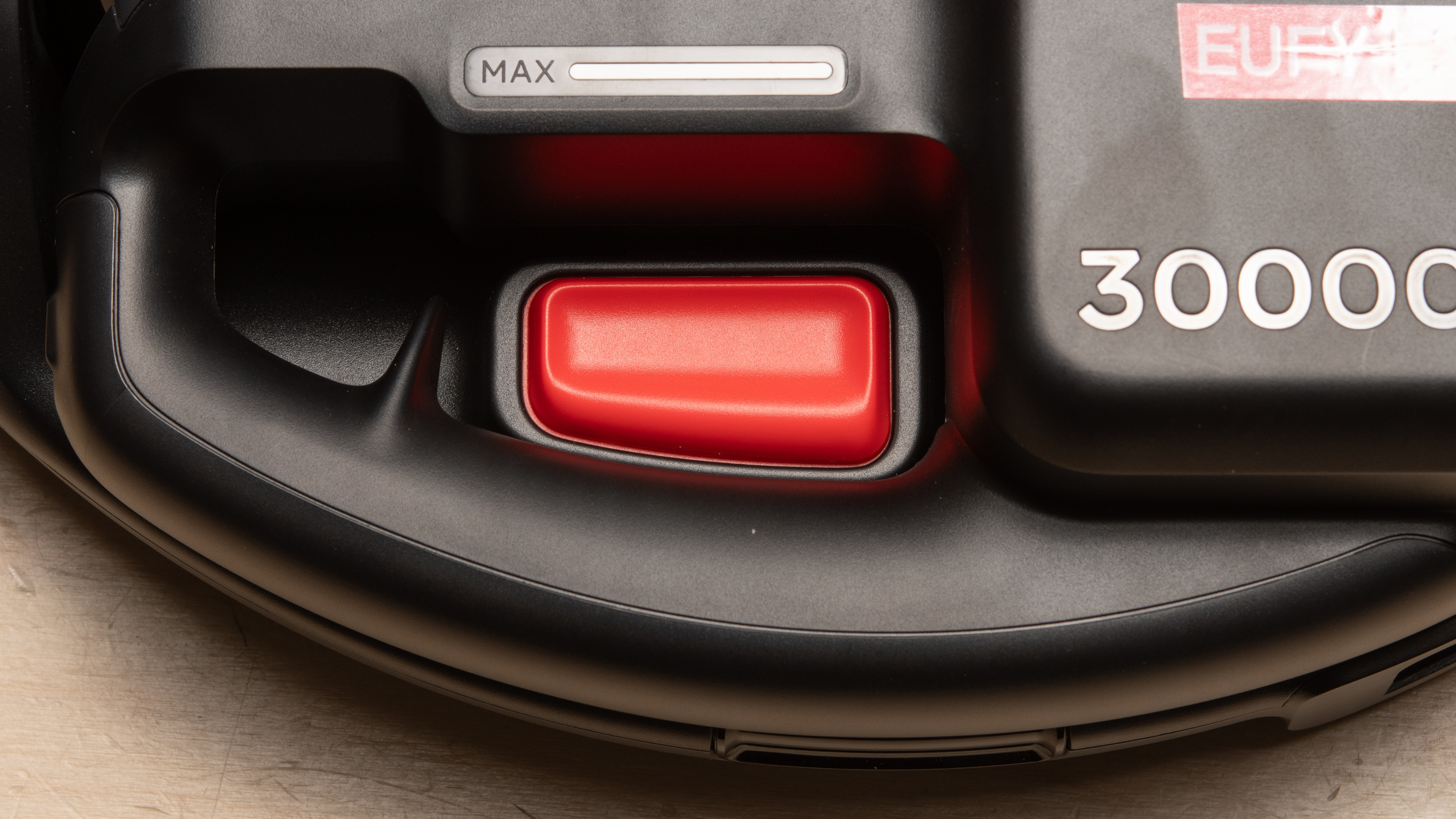 The dirt compartment can store more than eufy advertises, but as it fills, debris piles up against a flap designed to keep debris contained. If debris gets trapped beyond the flap, it will fall out as soon as you turn off the vacuum's suction. So you should empty the dirt compartment as soon as the translucent cup appears full.