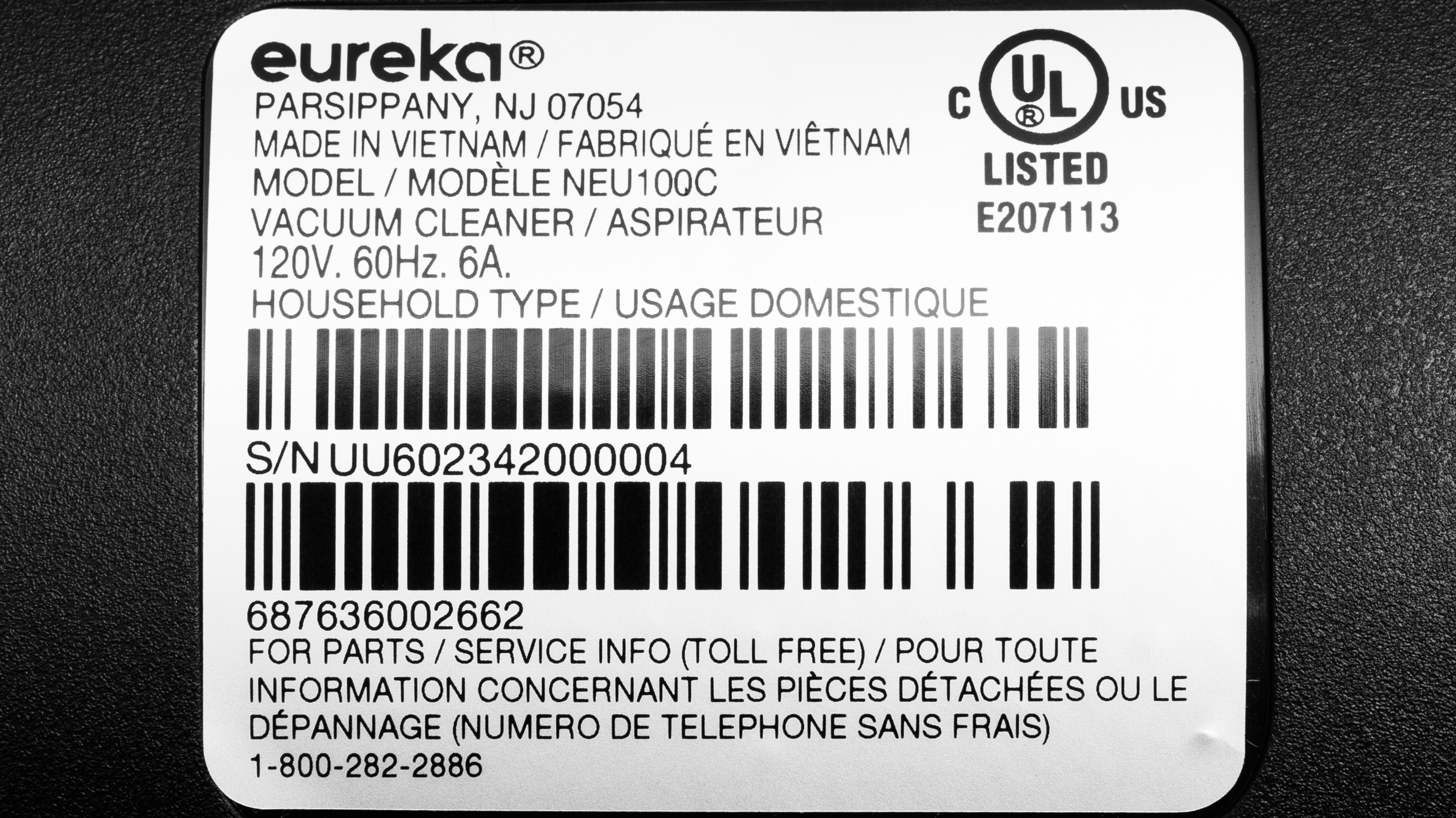 The Eureka Airspeed is available in several color variants: 'Blue,' 'Purple,' 'Red,' and 'Green.' It's also sold as a rebranded model from Amazon Basics, as seen here. We tested the 'Green' variant, and you can see its label here.