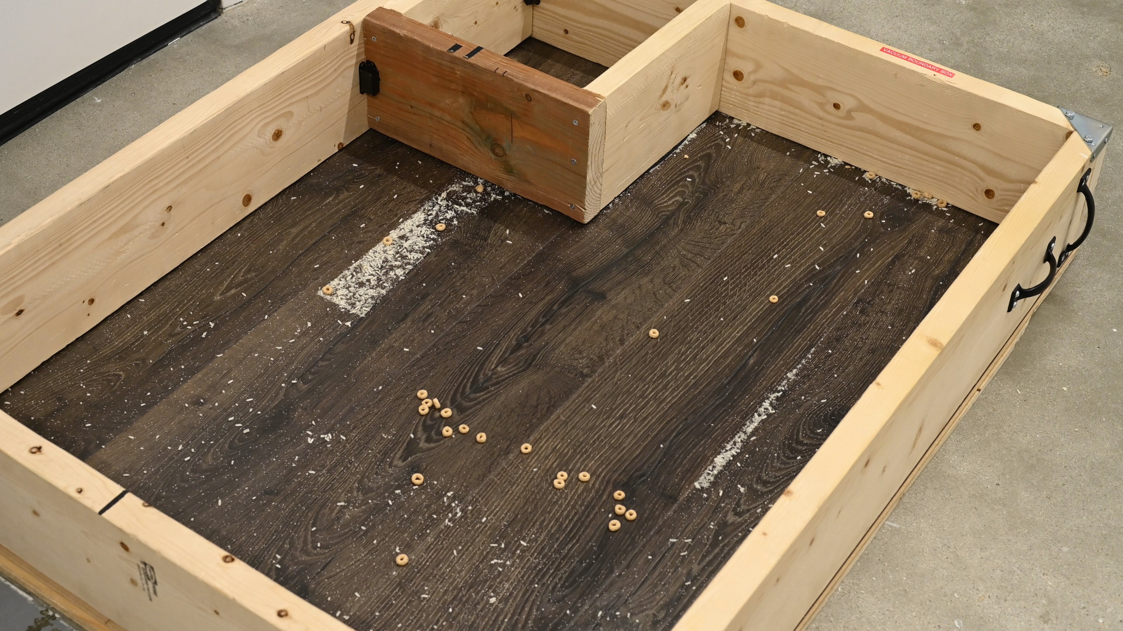 This vacuum's single-pass performance on hard floors is mediocre. While the C3 itself is plenty powerful and easily clears away finer debris, the bristles on its Parquet Twister floorhead are too closely spaced to allow it to pass over large and medium-sized materials like cereal or rice, causing it to push around this type of material. When dealing with this kind of debris, you'll need to lift the vacuum head so that the vacuum can suck everything up. Unlike the SEBO Airbelt D4's parquet floor brush, the Miele's front set of bristles aren't removable, which would result in a much-improved performance in this test.