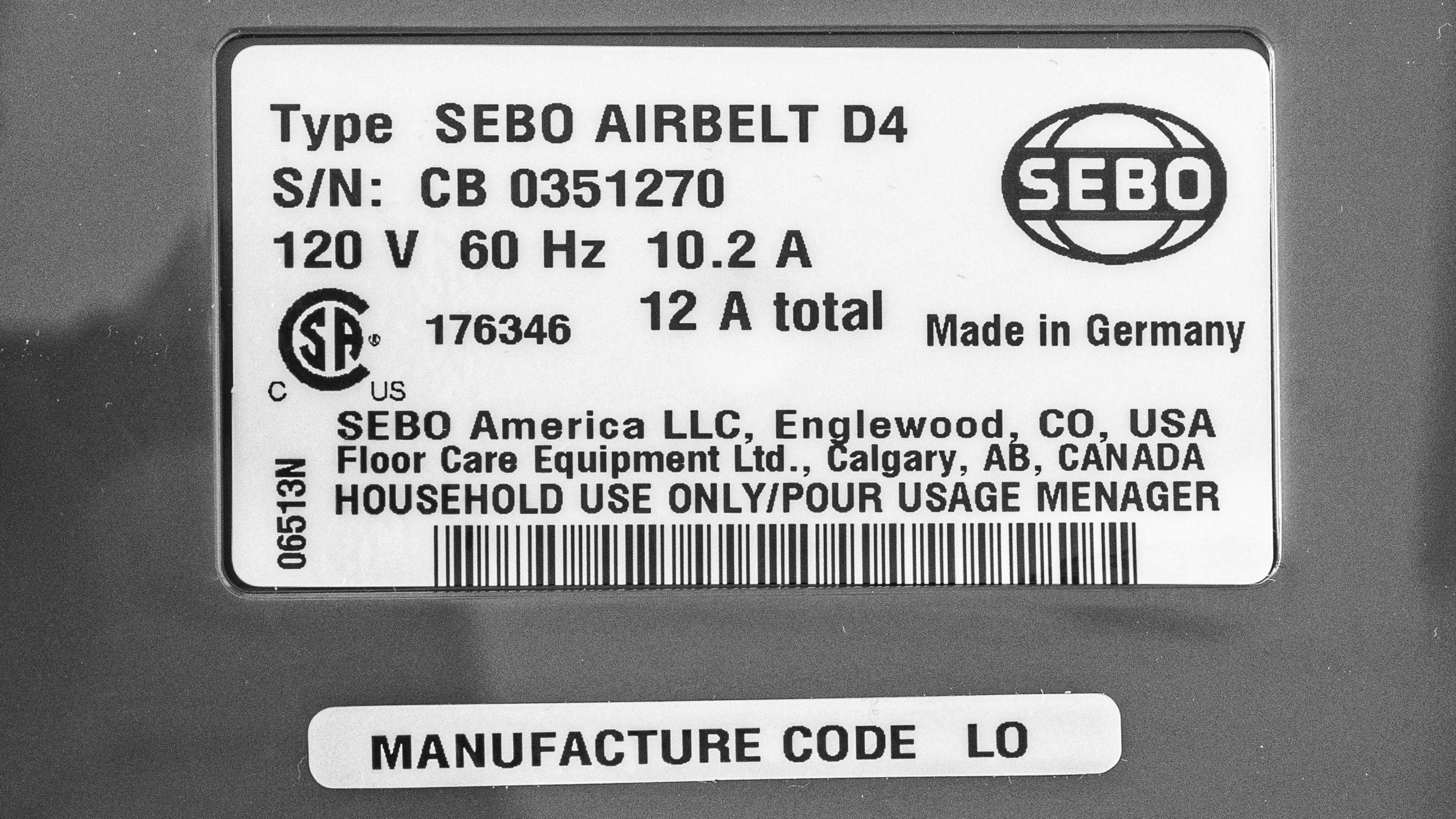 The SEBO D4 is part of the manufacturer's D-Series lineup, which are all mechanically identical and differ only in terms of included attachments. You can see the label for our test unit here. The differences in product variants are listed in the table below.
