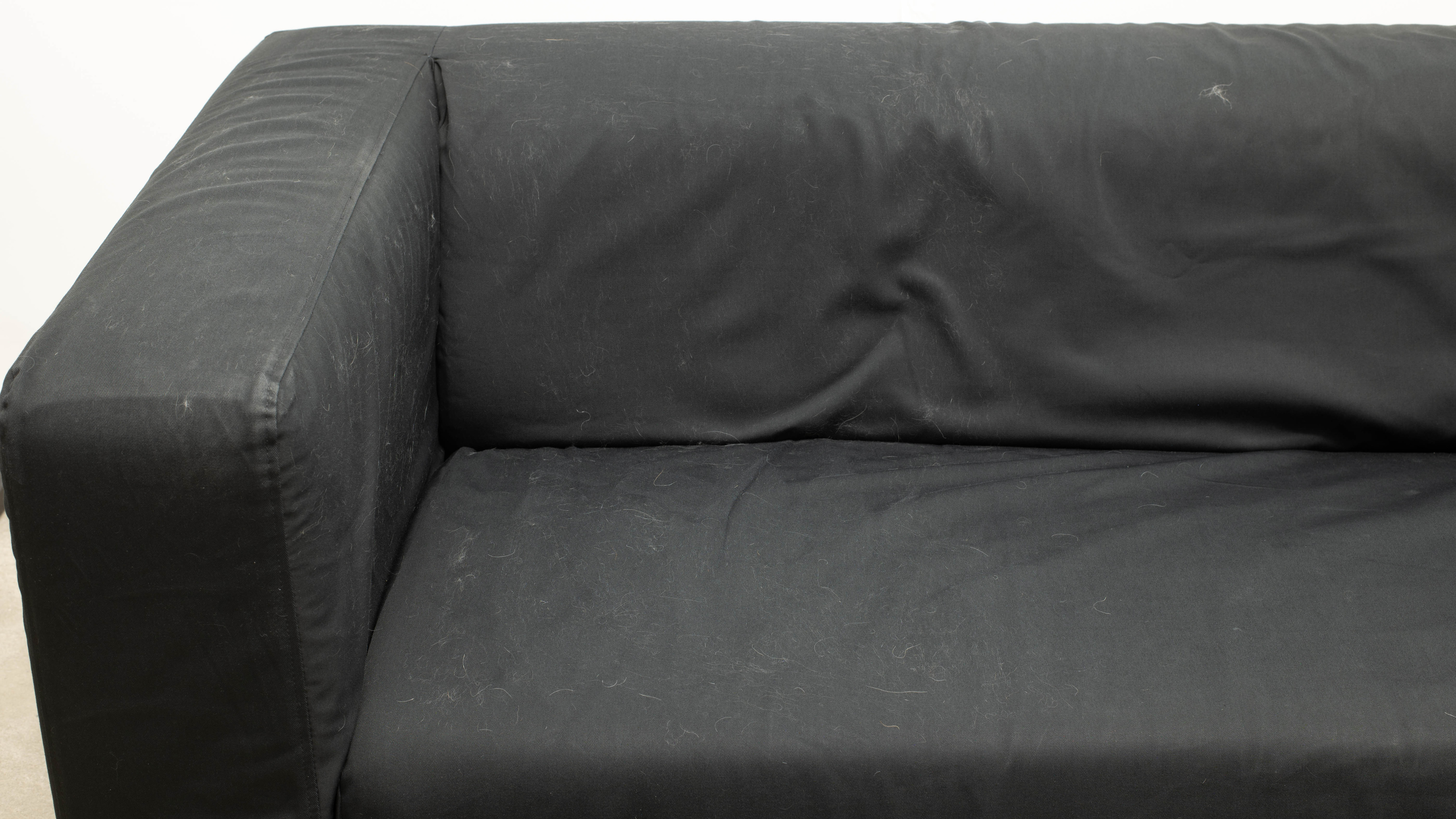 This vacuum does a poor job of cleaning debris on fabric furniture. Its Self-Clean Motorized Pet Brush tool is remarkably ineffective in dealing with pet hair, leaving most of it behind. Using it with its hard bristle brush results in only marginal improvement, as seen here. Pet hair gets collected in the tool's bristles instead of being sucked into its dustbin, forcing you to remove any leftover strands by hand.