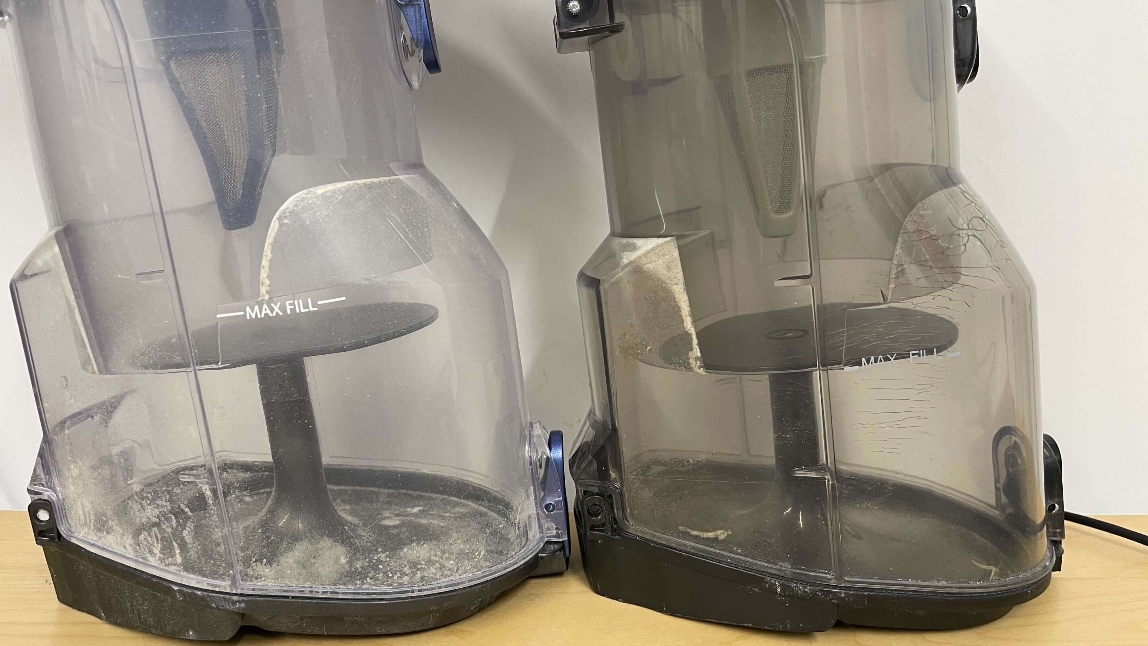The Shark Vertex Pro Cordless has a decent dirt compartment. While its overall shape and design is similar to that of the Shark ION P50 Cord-Free Powered Lift-Away, its max fill line has been moved up, resulting in a higher capacity. You can see a comparison between the two vacuums' dustbins here.