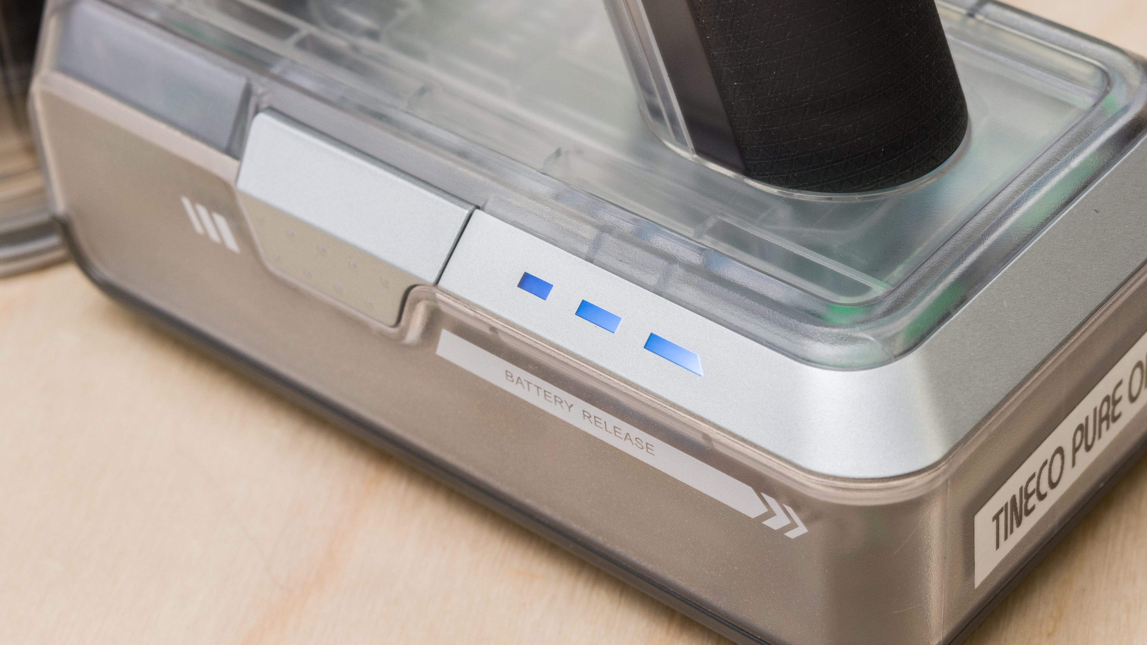 The Tineco PURE ONE S11 has decent battery performance. When used in its high-power 'MAX' mode, it runs out of power in just over 10 minutes, which doesn't give you a lot of time to deal with stubborn debris, but this also isn't unusual for a vacuum of this type. In its self-adjusting 'Auto' mode, it can run for a maximum of 40 minutes, which is considerably shorter than the Tineco PURE ONE X's runtime of about 70 minutes. On the upside, the S11 has a removable battery, so you can swap in a new one once the current battery pack is depleted. While the Tango variant we tested only comes with a single charging dock, the mid-range S11 model comes with a dual charging system for both of its included batteries. You can keep tabs on the vacuum's charge status via the trio of indicator lights on the pack itself or with its companion smartphone app.