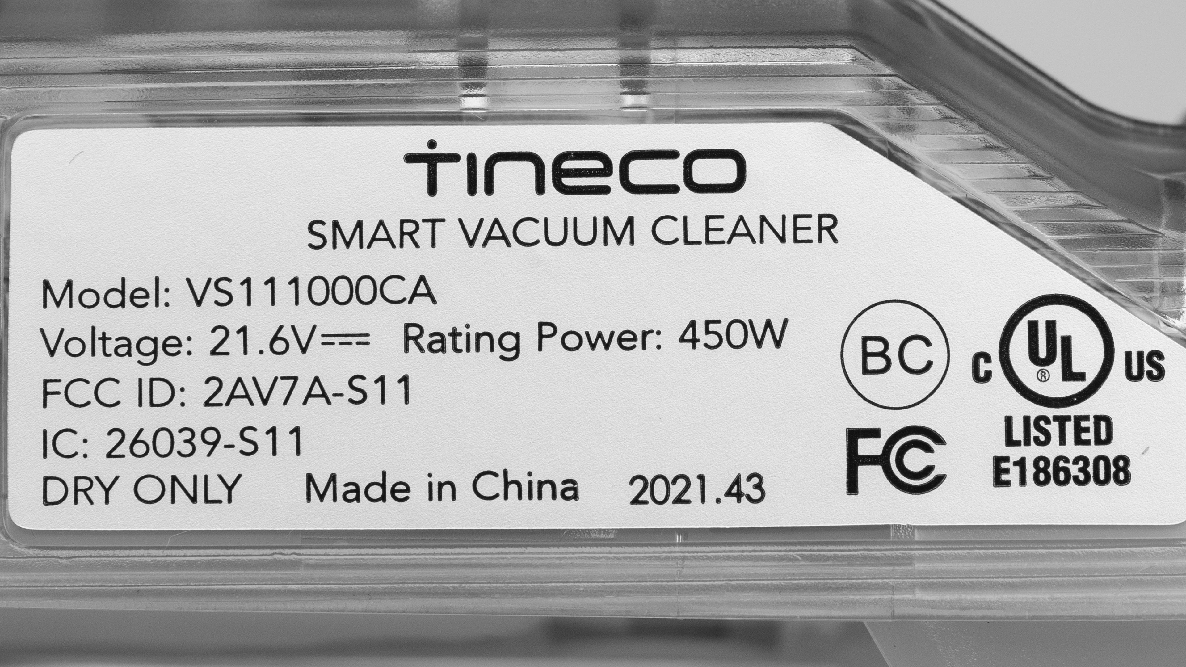 The Tineco PURE ONE S11 is available in three separate variants, though they differ only in terms of included attachments and accessories. We tested the slightly pricier, better-equipped Tango variant, and you can see its label here.