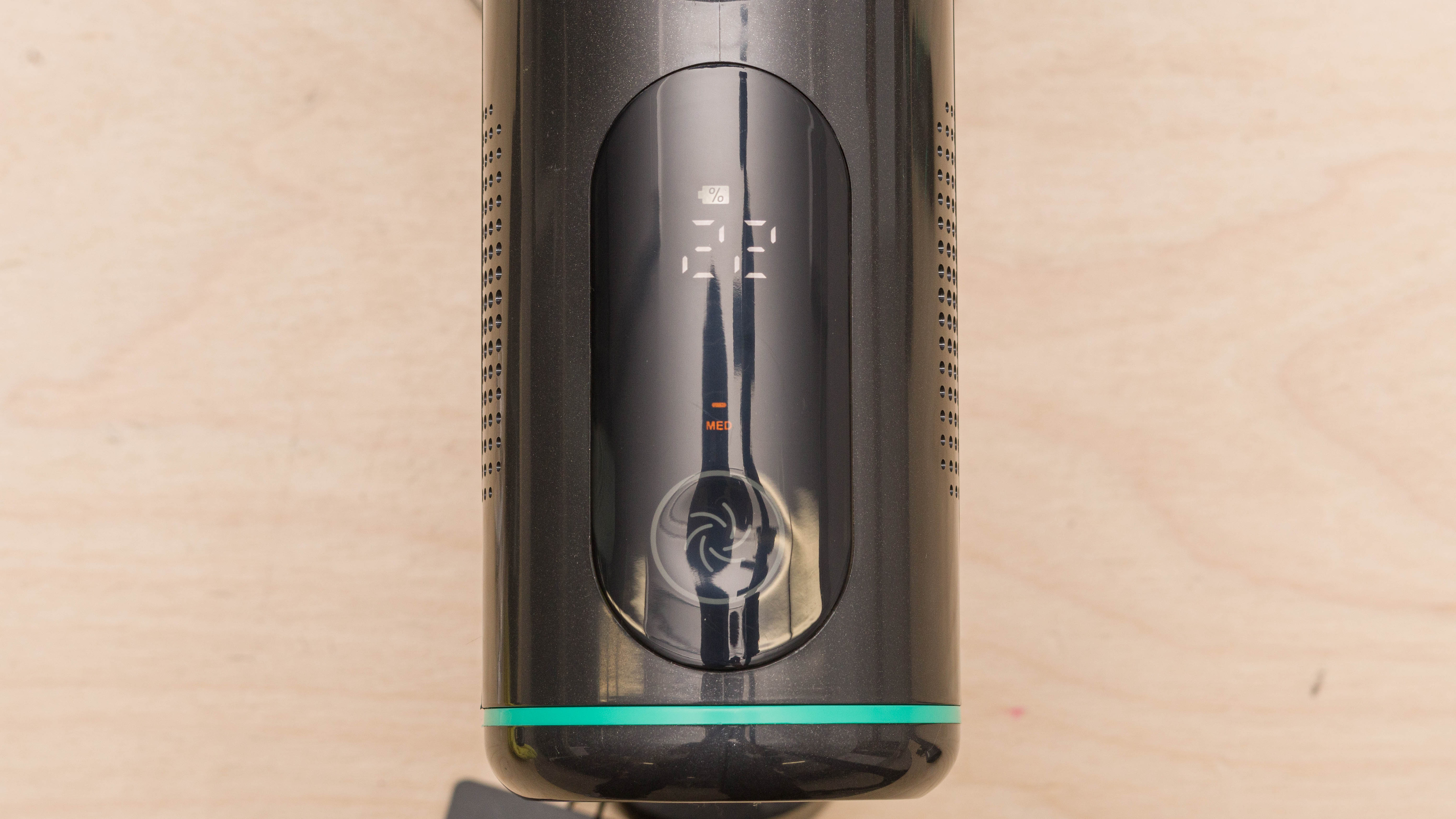 This vacuum has a couple of quality-of-life features. Its floorhead pivots for better maneuverability and features headlights to help you see when cleaning in darker areas. There are three suction modes that you can swap between by tapping on the LED touchscreen: the energy-efficient 'ECO' mode, the default 'MEDIUM' mode, and the high-power 'TURBO' mode. The touchscreen also shows a "Blockages or Brushroll" warning if the brushroll gets jammed or if a piece of debris becomes wedged in place.