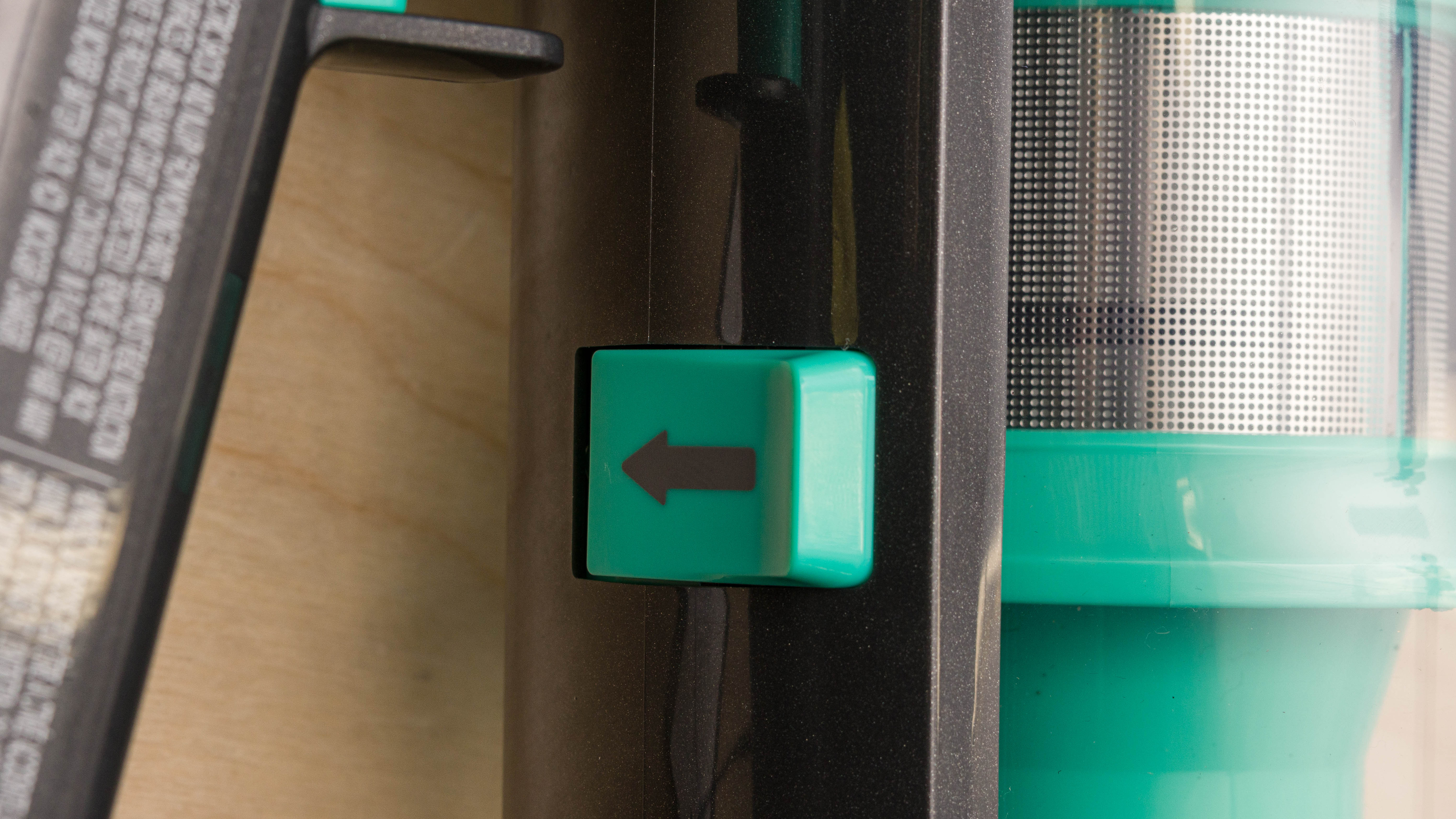 - Dirt compartment: You can remove the dustbin by pressing its release button and then lifting it free, which isn't especially hard. A separate latch opens the bottom of the dustbin so you can empty it over a trash bin once it reaches max capacity.