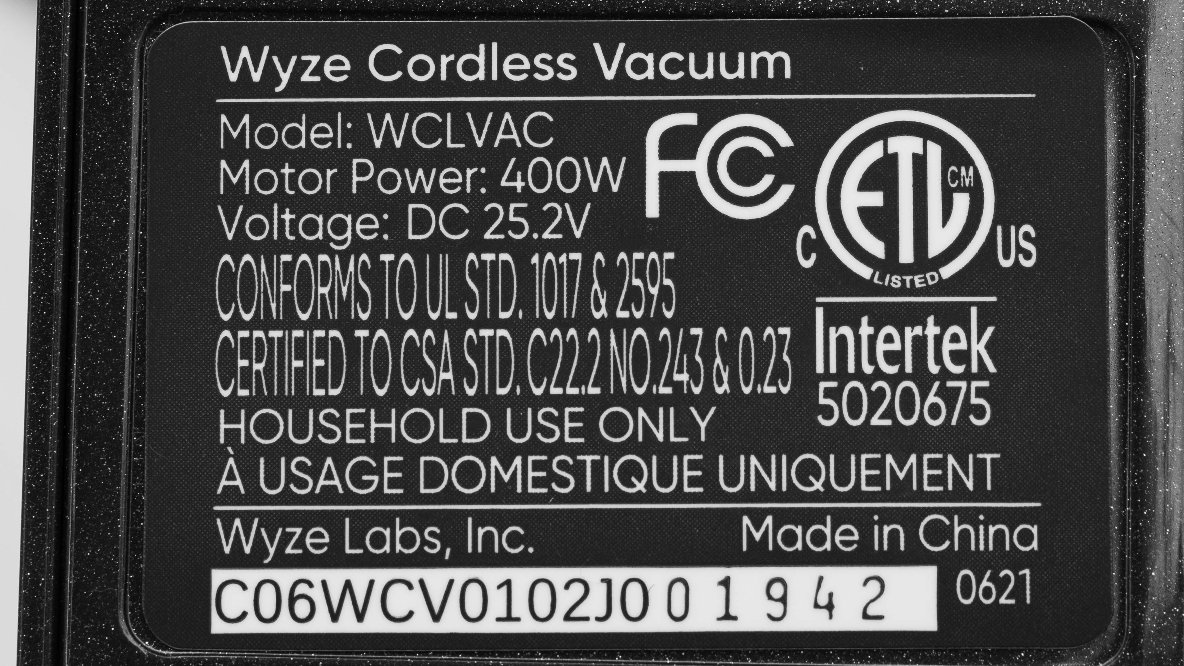 The Wyze Cordless Vacuum is only available in one color variant: 'Steel Grey with Wyze green accents,' and you can see our test unit's label here.