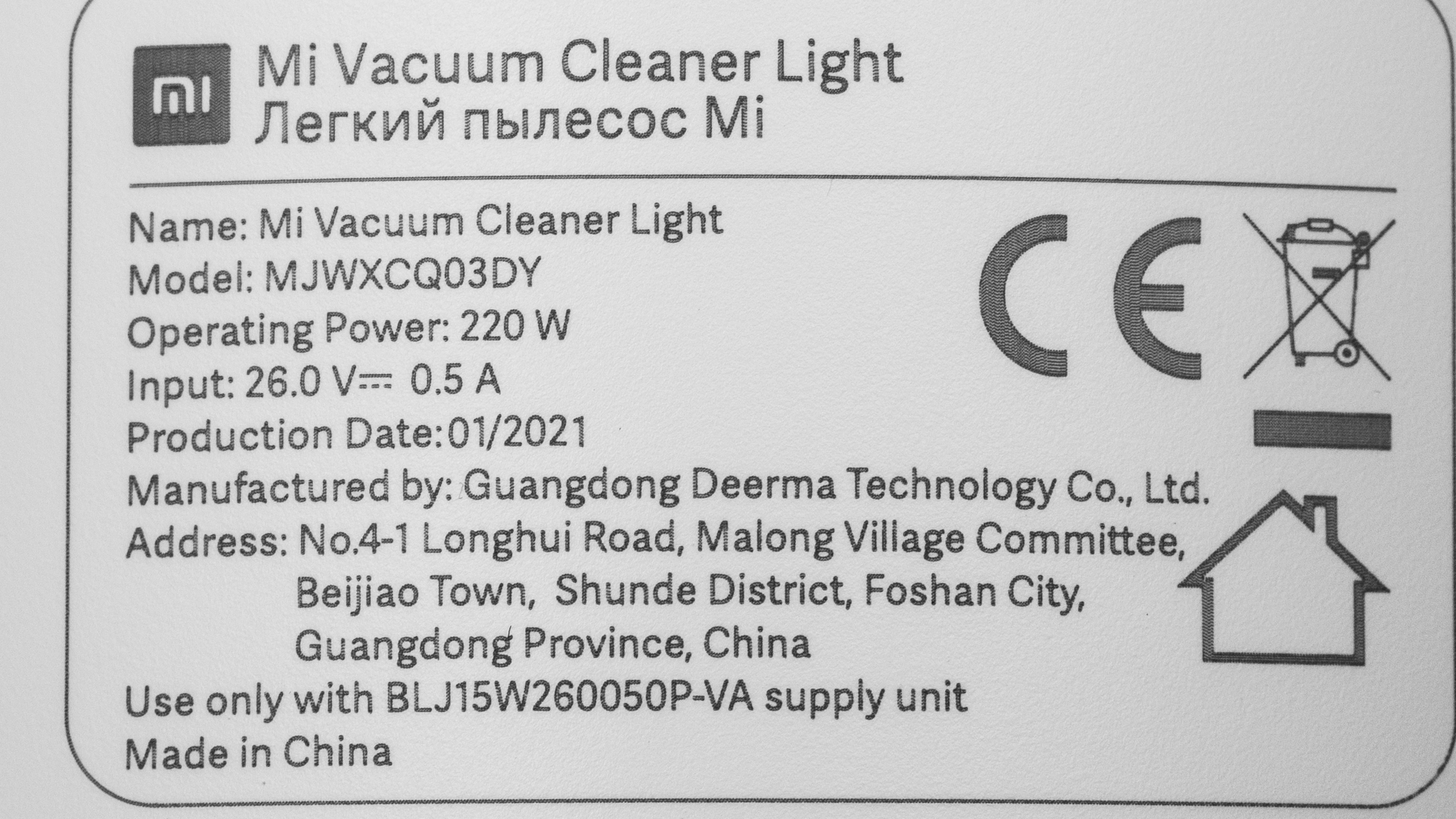 The Xiaomi Mi Vacuum Cleaner Light is only available in one color variant: 'White', and you can see its label here.