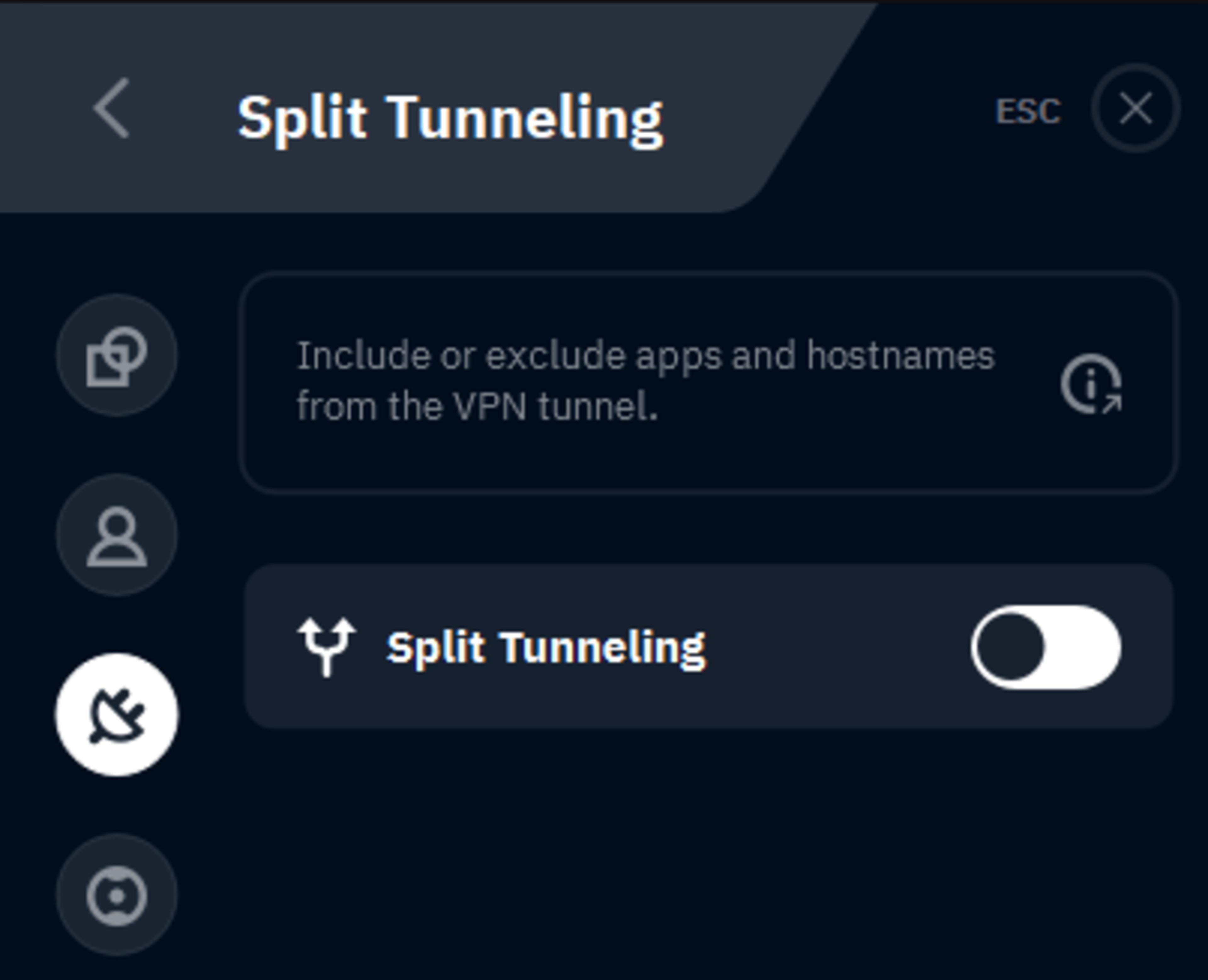 If you have to go the manual route, this is where things can get a bit tricky and/or sensitive. Enabling the wrong toggle could produce the opposite of the network you're aiming for. In Windscribe's example above, the two options for the split tunnel type are Exclusive and Inclusive: